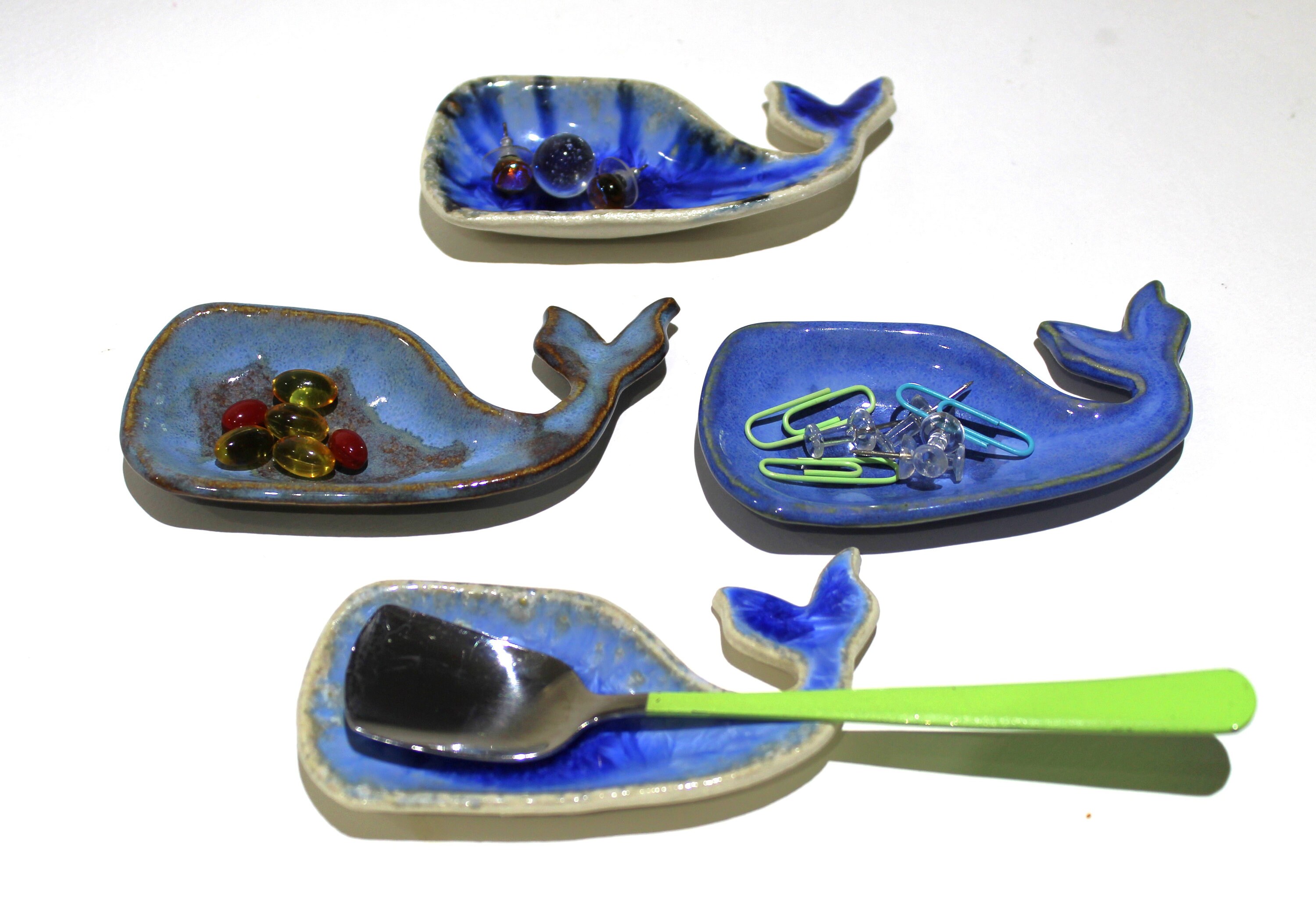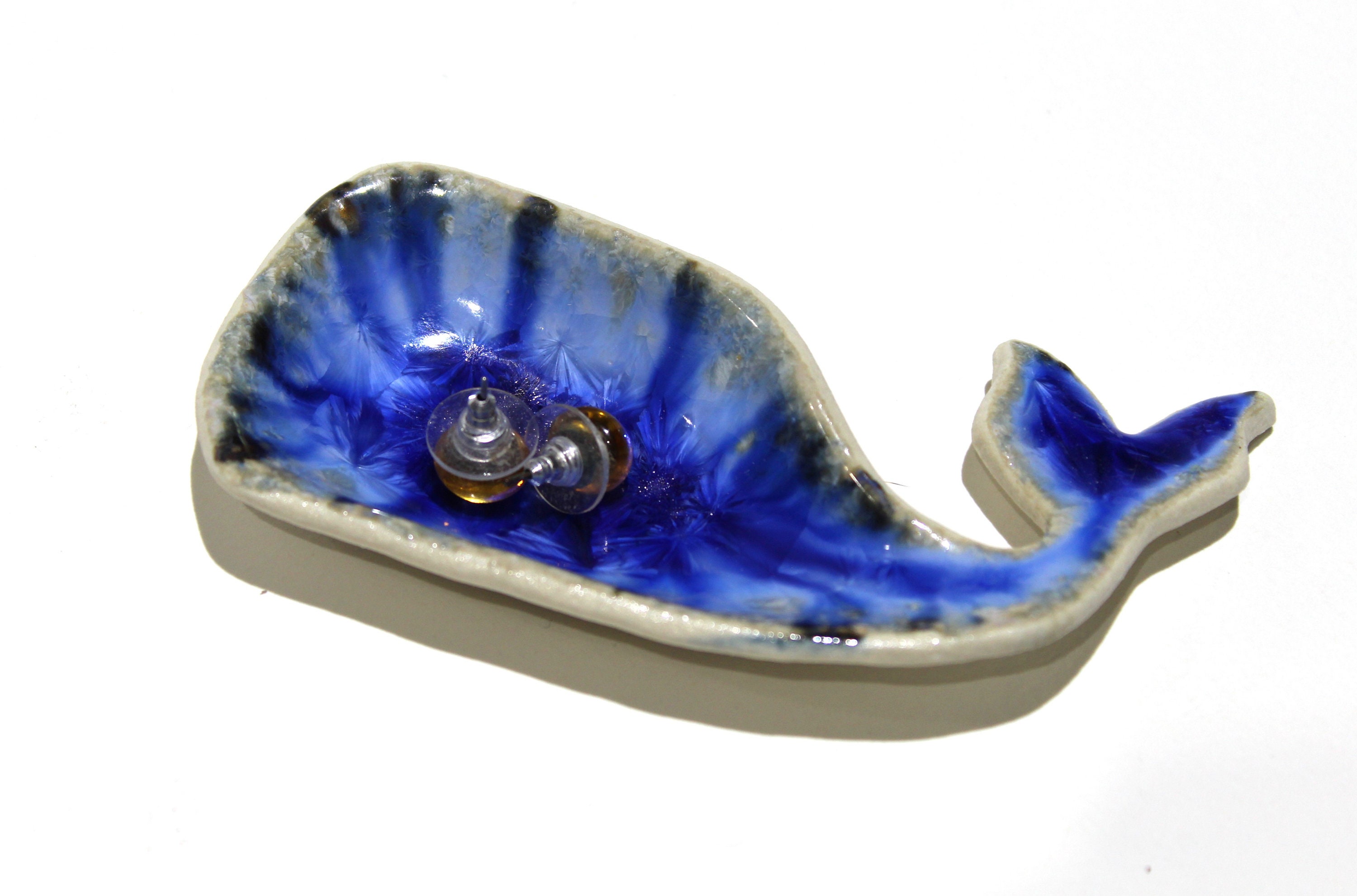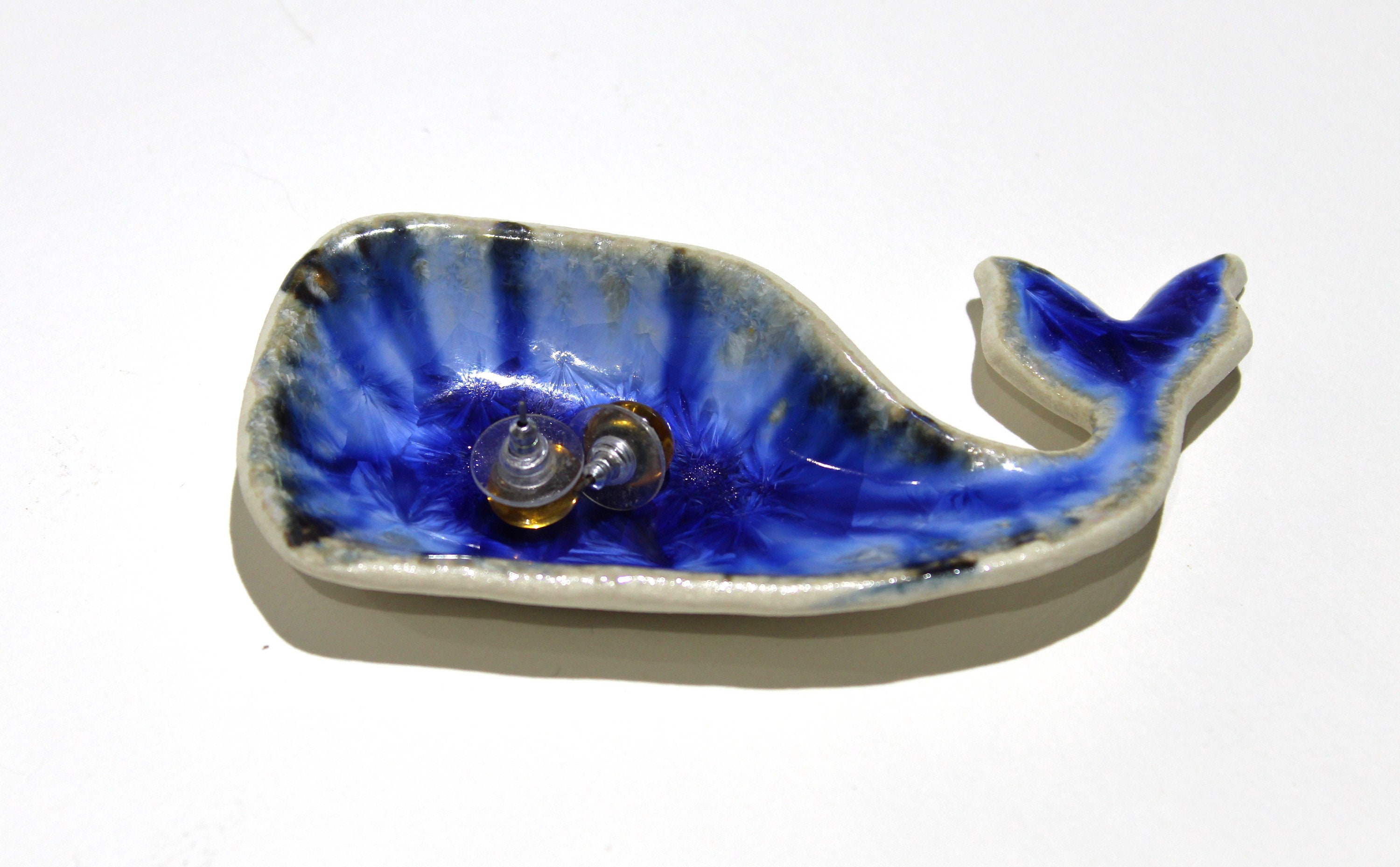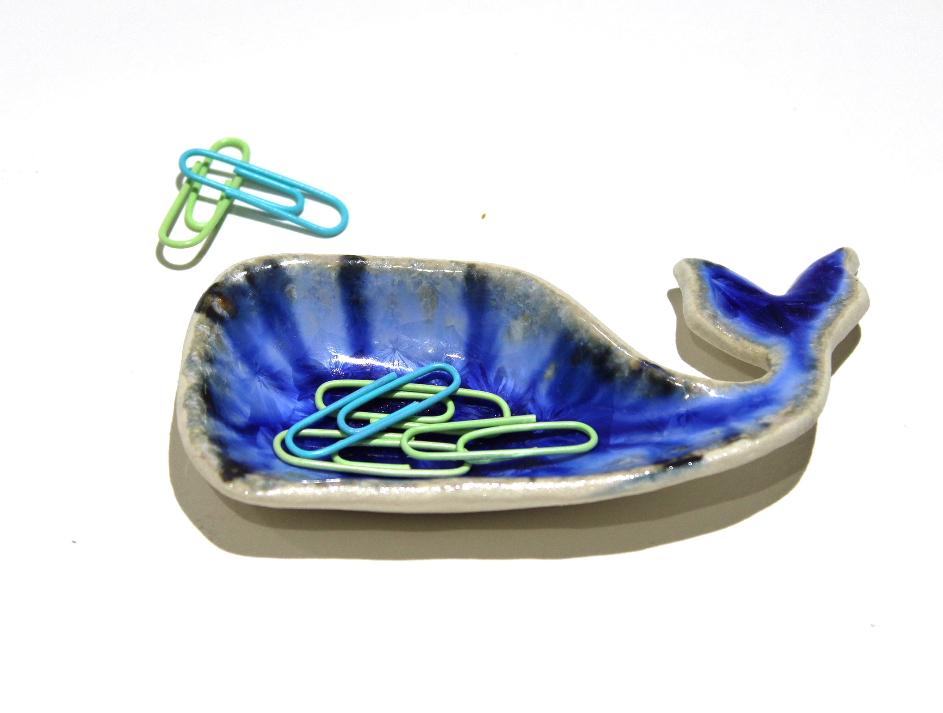 Handmade Baby Blue Whale ring dish, jewelry trinket holder, tea bag or spoon rest.