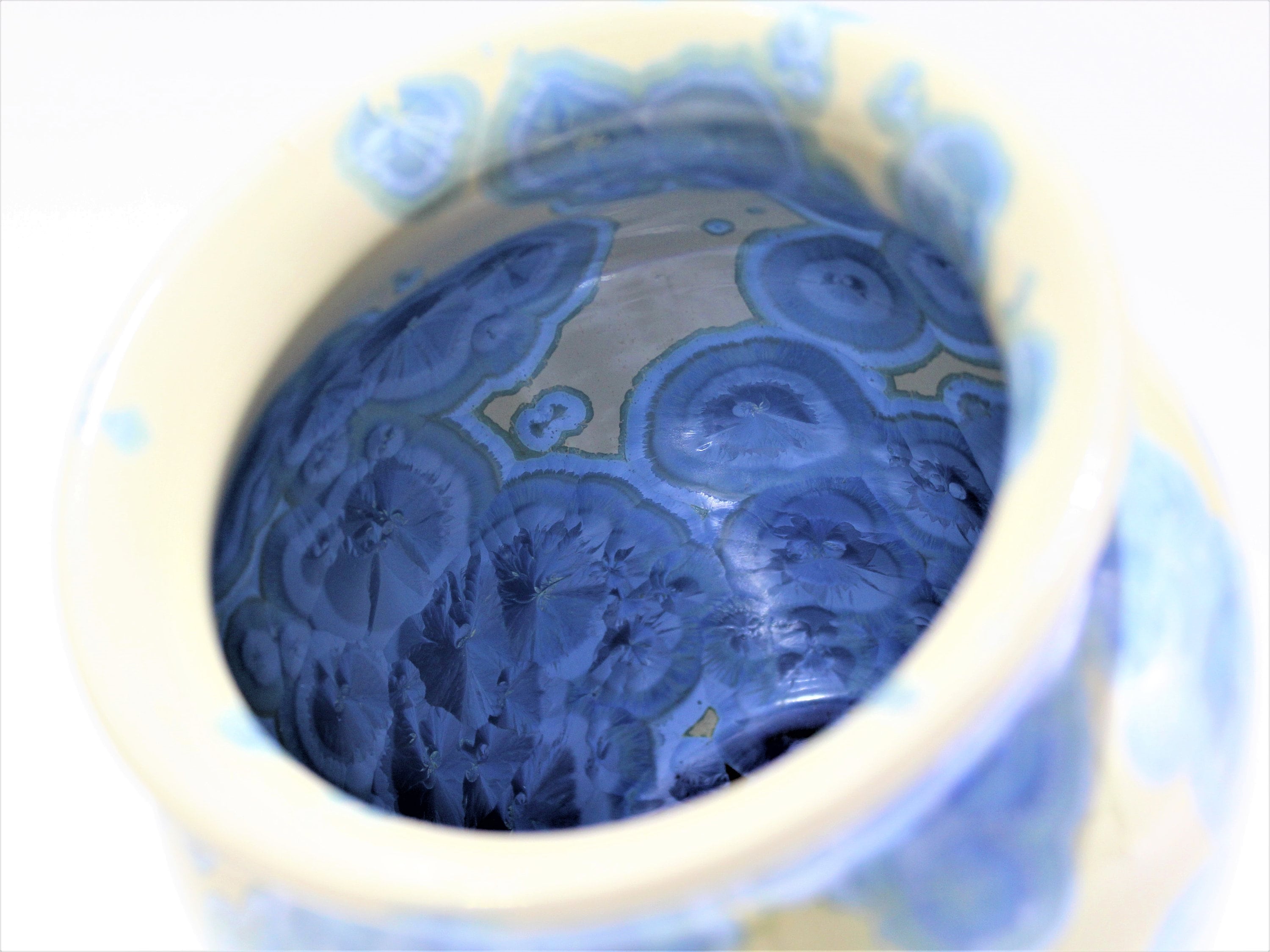 Well, the crystalline glazing process is a combination of art and science. It requires many extra steps beyond that of typical pottery glazing. Not to mention the failure rate with this type of glazing can be high; however, a successful firing can produce amazing results. Therefore, this whole labor-intensive process is worth all the effort.
