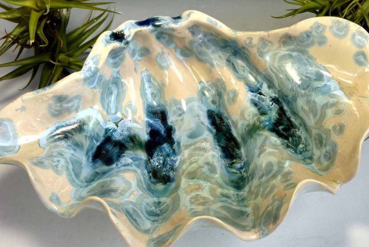 These clam shells are unique, I make each one by hand, one at a time, from porcelain clay and glazed with my special glaze.